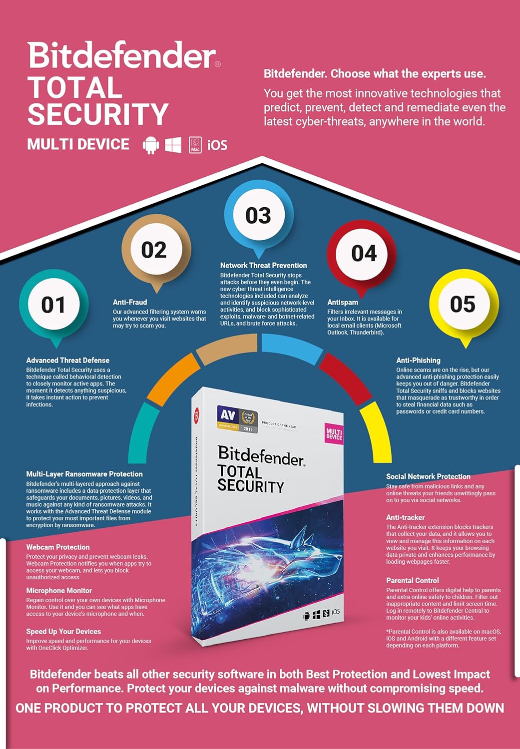 Bitdefender Total Security for 1 user and a 2-year subscription offers multi-layered ransomware protection, anti-malware defence, complete real-time data safeguarding, continuous security updates, and numerous other features to keep your devices secure throughout the license period. Bitdefender Total Security’s exceptional multi-layered defence protects your devices from all new and existing e-threats. Bitdefender Total Security for Windows provides unmatched threat detection to prevent sophisticated malware. It outperforms all other security software in both optimal protection and minimal impact on performance, defending your devices against malware without compromising speed.