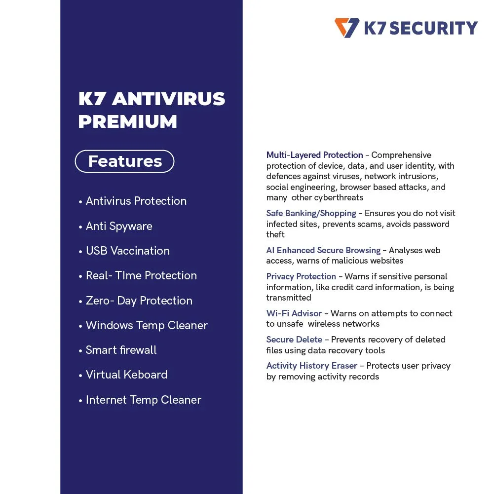 K7 Antivirus Premium – 1 User, 1 Year, Email Delivery