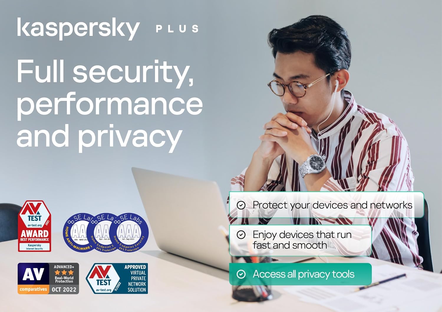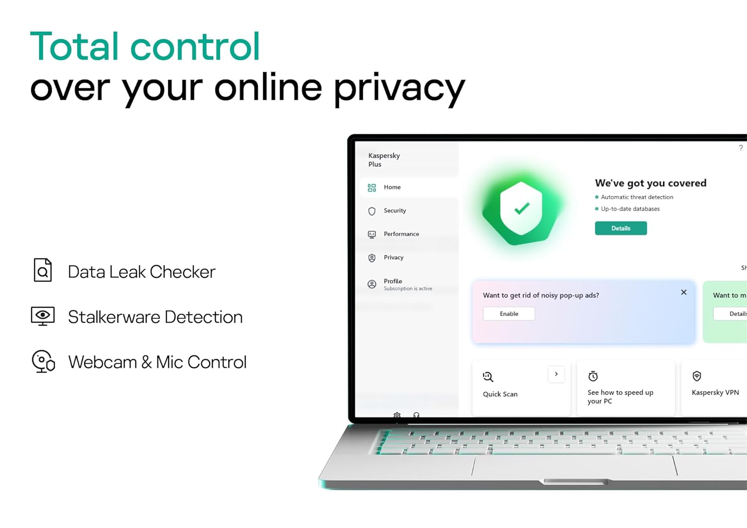 Kaspersky Plus offers next-generation cybersecurity to protect you against new viruses, ransomware, and malware – without slowing you down. Also includes payment protection and password manager to keep your digital life private and safe. Continuously scans the device for viruses, worms, Trojans, CryptoLockers, rootkits, and spyware — guarding you against both new and established online threats. Kaspersky Plus security delivers real-time, non-stop analysis of files, apps, and websites across your computers, safeguarding your data via rapid threat detection.